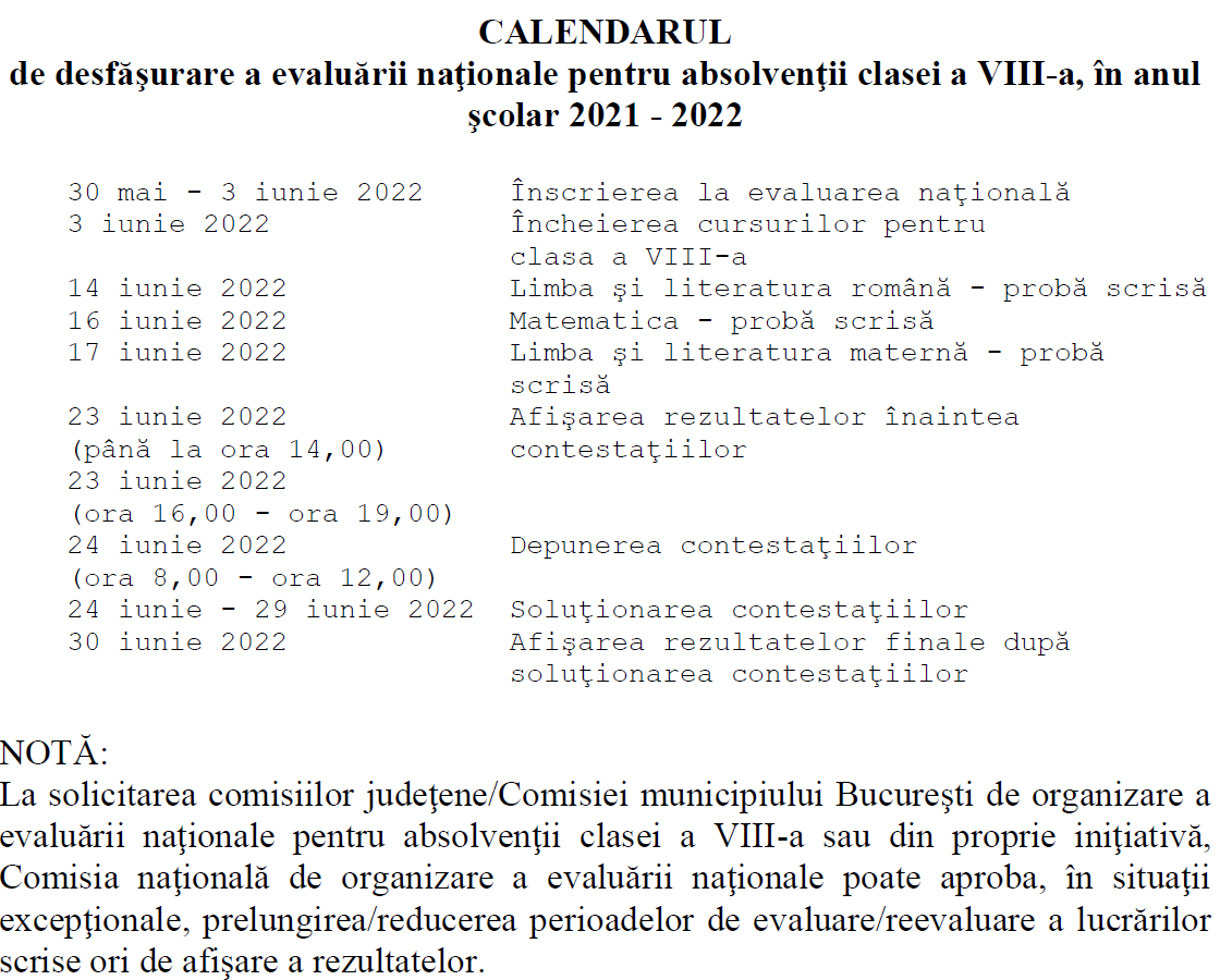 Organizarea și desfășurarea Evaluării Naționale pentru